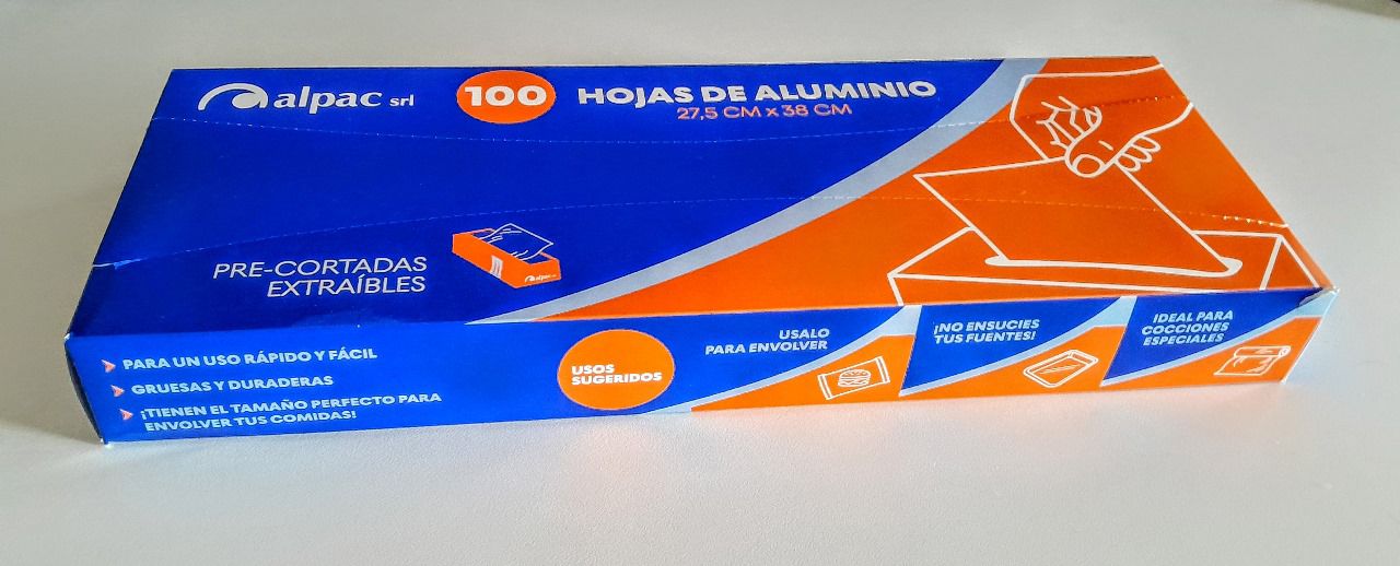 Láminas de aluminio con caja dispensadora 27,5×28 cm x 100 láminas.