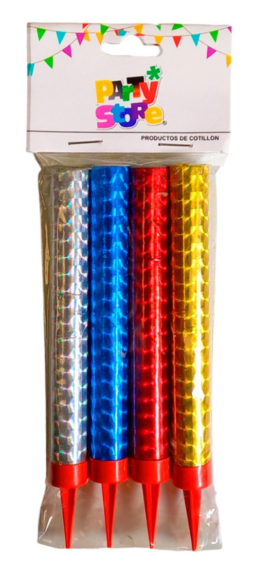 Vela bengala holográfica surtida de 12cm. Bolsa por 4 unidades.