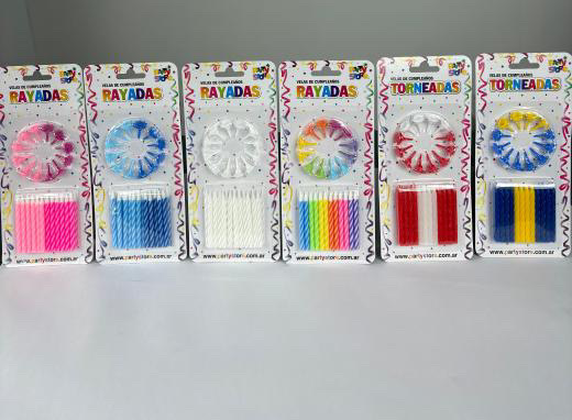 Velas rayadas rosas por 24 unidades.